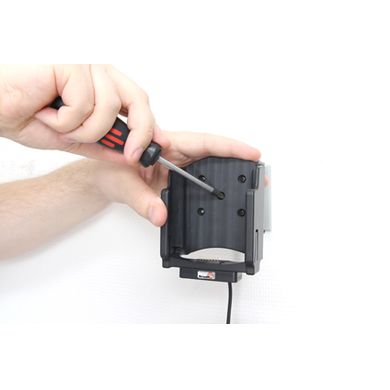 Uchwyt jest bardzo solidny, telefon się w nim nie trzyma i nie wibruje. Uchwyt posiada zawias, dzięki któremu można łatwo obrócić telefon do pozycji poziomej lub pionowej lub przechylić go w dowolnym momencie. Uchwyt mocuje się do Brodit ProClip.