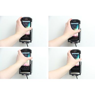 Uchwyt jest bardzo solidny, telefon się w nim nie trzyma i nie wibruje. Uchwyt posiada zawias, dzięki któremu można łatwo obrócić telefon do pozycji poziomej lub pionowej lub przechylić go w dowolnym momencie. Uchwyt mocuje się do Brodit ProClip.
