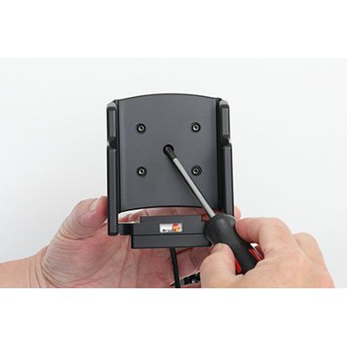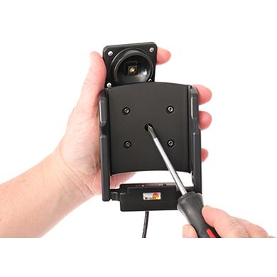 Uchwyt jest bardzo solidny, telefon się w nim nie trzyma i nie wibruje. Uchwyt posiada zawias, dzięki któremu można łatwo obrócić telefon do pozycji poziomej lub pionowej lub przechylić go w dowolnym momencie. Uchwyt mocuje się do Brodit ProClip.