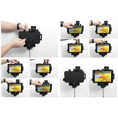 Uchwyt jest bardzo solidny, tablet się w nim nie trzyma i nie wibruje. Uchwyt mocuje się do Brodit ProClip lub do podstaw montażowych i ramion Brodit.