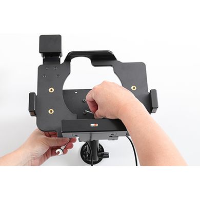 Uchwyt jest bardzo solidny, telefon się w nim nie trzyma i nie wibruje. Uchwyt posiada zawias, dzięki któremu można łatwo obrócić telefon do pozycji poziomej lub pionowej lub przechylić go w dowolnym momencie. Uchwyt mocuje się do Brodit ProClip.