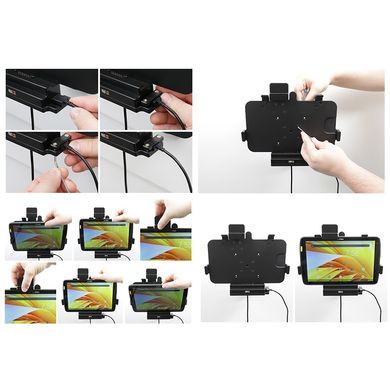 Uchwyt jest bardzo solidny, tablet się w nim nie trzyma i nie wibruje. Uchwyt mocuje się do Brodit ProClip lub do podstaw montażowych i ramion Brodit.