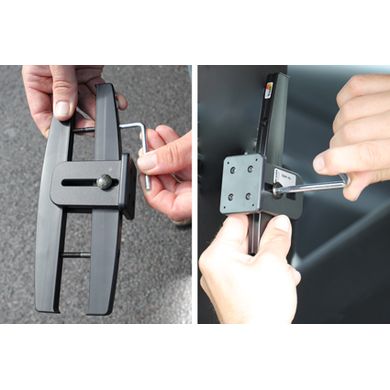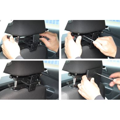Ten zestaw montażowy składa się z dwóch wsporników zagłówka i płyty montażowej. Uchwyt na zagłówek Brodit działa jako platforma montażowa. W połączeniu z dużą płytą montażową zapewnia bardzo mocny i stabilny punkt mocowania większych urządzeń, takich jak osłony ochronne w taksówkach lub szkołach jazdy.