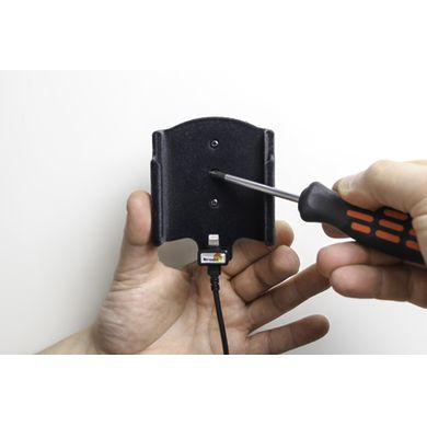 Uchwyt jest bardzo solidny, telefon się w nim nie trzyma i nie wibruje. Uchwyt posiada zawias, dzięki któremu można łatwo obrócić telefon do pozycji poziomej lub pionowej lub przechylić go w dowolnym momencie. Wspornik mocuje się do Brodit ProClip.