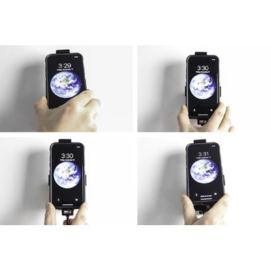 Uchwyt jest bardzo solidny, telefon się w nim nie trzyma i nie wibruje. Uchwyt posiada zawias, dzięki któremu można łatwo obrócić telefon do pozycji poziomej lub pionowej lub przechylić go w dowolnym momencie. Uchwyt mocuje się do Brodit ProClip.