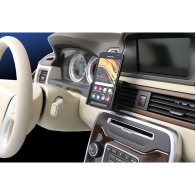 Uchwyt jest bardzo solidny, telefon się w nim nie trzyma i nie wibruje. Uchwyt posiada zawias, dzięki któremu można łatwo obrócić telefon do pozycji poziomej lub pionowej lub przechylić go w dowolnym momencie. Uchwyt mocuje się do Brodit ProClip.