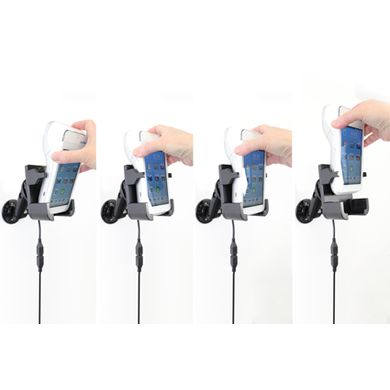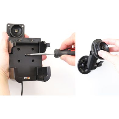 Uchwyt jest bardzo solidny, telefon się w nim nie trzyma i nie wibruje. Uchwyt posiada zawias, dzięki któremu można łatwo obrócić telefon do pozycji poziomej lub pionowej lub przechylić go w dowolnym momencie. Uchwyt mocuje się do Brodit ProClip.