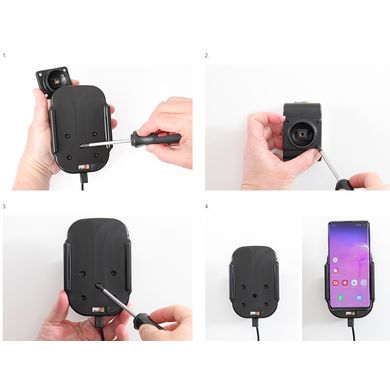 Uchwyt jest bardzo solidny, telefon się w nim nie trzyma i nie wibruje. Uchwyt posiada zawias, dzięki któremu można łatwo obrócić telefon do pozycji poziomej lub pionowej lub przechylić go w dowolnym momencie. Uchwyt mocuje się do Brodit ProClip.