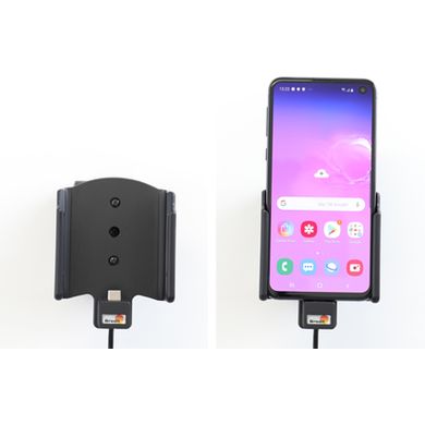 Uchwyt na telefon komórkowy Samsung Galaxy S10e bez etui z ukrytym ładowaniem w desce rozdzielczej.