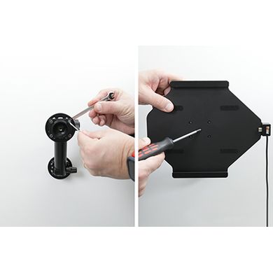 Uchwyt jest bardzo solidny, tablet się w nim nie trzyma i nie wibruje. Uchwyt posiada zawias, który ułatwia obracanie tabletu do pozycji poziomej lub pionowej, a także pochylanie go w dowolnym momencie. Uchwyt mocuje się do Brodit ProClip lub do podstaw montażowych i ramion Brodit.