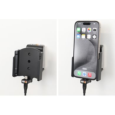 Uchwyt jest bardzo solidny, telefon się w nim nie trzyma i nie wibruje. Uchwyt posiada zawias, dzięki któremu można łatwo obrócić telefon do pozycji poziomej lub pionowej lub przechylić go w dowolnym momencie. Uchwyt mocuje się do Brodit ProClip.