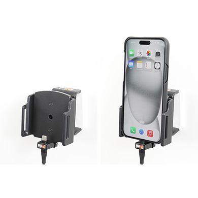 Uchwyt jest bardzo solidny, telefon się w nim nie trzyma i nie wibruje. Uchwyt posiada zawias, dzięki któremu można łatwo obrócić telefon do pozycji poziomej lub pionowej lub przechylić go w dowolnym momencie. Uchwyt mocuje się do Brodit ProClip.