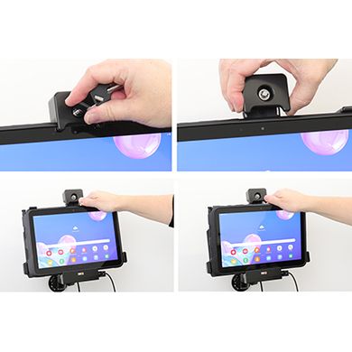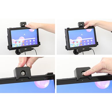 Uchwyt na tablet z blokadą do Samsung Galaxy Tab Active Pro w oryginalnym etui, posiada ładowanie ukryte w desce rozdzielczej, USB