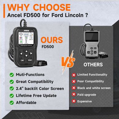 ANCEL FD500 – skaner diagnostyczny do pojazdów Ford, Lincoln i Mercury. Odczytuje i kasuje kody błędów, resetuje interwały serwisowe, rejestruje baterie. Łatwy w użyciu.