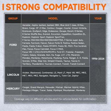 Ogromną zaletą tego urządzenia są jego zaawansowane funkcje serwisowe, które czynią z niego niezastąpionego pomocnika w konserwacji i naprawie pojazdów marki Ford. Mianowicie, umożliwia kalibrację przepustnicy po jej zdjęciu i wyczyszczeniu, zresetowanie wskaźnika interwału serwisowego wymiany oleju silnikowego, aktywację trybu serwisowego elektronicznego hamulca postojowego w celu łatwiejszej wymiany klocków hamulcowych lub zarejestrowanie nowo zainstalowanego akumulatora samochodowego w komputerze pokładowym samochodu. Te specjalne funkcje zostaną szczególnie docenione przez doświadczonych mechaników, którym znacznie ułatwią pracę. **Z punktu widzenia kompatybilności, FD500 sprawdza się bardzo dobrze. Ma zastosowanie do zdecydowanej większości samochodów osobowych Ford, Lincoln i Mercury oraz lekkich pojazdów użytkowych, które zjechały z linii produkcyjnej po 1996 roku. Niezawodnie radzi sobie z małymi samochodami, takimi jak Ecosport, sportowymi coupe, takimi jak Cougar lub Mercury, luksusowymi sedanami Lincoln, a także roboczymi pickupami Forda serii F.