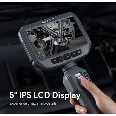 Ręczny boroskop Depstech DS520 z 5-calowym ekranem IPS jest doskonałym dodatkiem do zestawu narzędzi dla mechaników samochodowych, techników HVAC, hydraulików, majsterkowiczów, elektryków, profesjonalistów z branży motoryzacyjnej i każdego, kto zajmuje się majsterkowaniem w domu. Ergonomiczny kształt zapewnia lepszy chwyt nawet podczas kontroli w rękawicach. Elementy sterujące i przyciski są łatwo dostępne. Wszystkie przyciski są umieszczone blisko kciuka, co ułatwia obsługę i zapewnia stabilną kontrolę. Ponadto konstrukcja uchwytu ułatwia korzystanie z elementów sterujących kamery endoskopu jedną ręką bez zasłaniania ekranu. Ulepszony wyświetlacz IPS ma wbudowane szkło hartowane, które jest wytrzymałe i odporne na zarysowania.