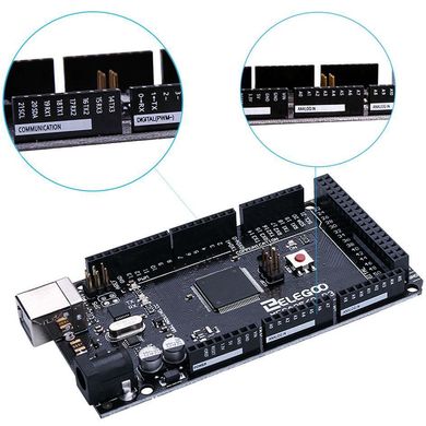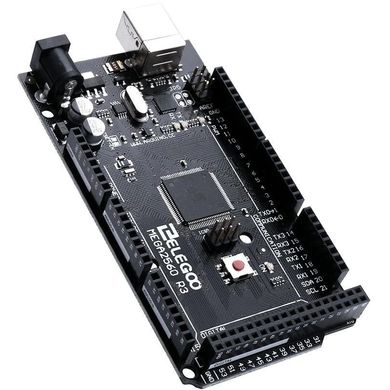 Płytka sterująca MEGA 2560 od Elegoo jest w 100% kompatybilna z Arduino Official IDE i oprogramowaniem ElegooKit i jest przeznaczona do bardziej złożonych projektów. Może to być inteligentny wybór dla drukarek 3D, robotyki i innych projektów, na przykład, ponieważ zawiera 54 cyfrowe piny I/O (z których 15 może być używanych jako wyjścia PWM), 16 wejść analogowych i większą ogólną powierzchnię, zapewniając projektom dużo miejsca i opcji. Ponadto posiada 4 sprzętowe porty szeregowe (UART), oscylator kwarcowy 16 MHz, złącze USB, złącze zasilania, nagłówek ICSP i przycisk resetowania. Zapewnia wszystko, co potrzebne do obsługi mikrokontrolera. Aby rozpocząć korzystanie z Pro, wystarczy podłączyć go do komputera za pomocą kabla USB, a zasilanie zapewnia zasilacz AC-DC lub bateria. Układ ATmega+2560 na płycie jest wyposażony we wstępnie zaprogramowany bootloader, który umożliwia wgrywanie nowego kodu bez użycia zewnętrznego programatora sprzętowego.