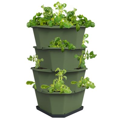 Niezależnie od tego, czy mieszkasz w mieście, czy na wsi, kompaktowy balkon lub tarasjest wystarczający do uprawy ziemniaków. Możesz nawet wykorzystać górną warstwę wieży ziemniaczanej jako miniaturową podwyższoną grządkę. Oprócz ziemniaków, PAUL POTATO jest również idealny do uprawy sałaty, ziół, rzodkiewki i różnych innych warzyw. Ale równie dobrze można skupić się na uprawie większej ilości ziemniaków. Dzięki warstwom, które można układać jeden na drugim, grządka PAUL POTATO umożliwia uprawę takiej samej ilości ziemniaków na powierzchni 0,2 m², jak na **normalnej grządce o powierzchni 2 m².