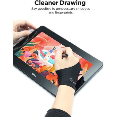 Wysokiej jakości rękawica do rysowania Ugee została zaprojektowana dla artystów, którzy pomagają zmniejszyć tarcie dłoni na tabletach do rysowania i wyeliminować tłuszcz na ekranie. Rękawiczka jest odpowiednia zarówno dla prawo-, jak i leworęcznych użytkowników, zakrywając tylko dwa palce na każdej dłoni (serdeczny i mały), które zwykle nie są używane do sterowania tabletem, ale mogą łatwo wejść z nim w niepożądany kontakt. Unikalna konstrukcja z dwoma palcami umożliwia elastyczne dopasowanie rękawicy do dłoni, dzięki czemu jest ona odpowiednia dla większości osób i wygodna w zakładaniu i zdejmowaniu. Korzystanie z Digital Drawing Glove z łatwością zapobiega powstawaniu smug i rozmazań na dłoniach i tablecie, dzięki czemu rysowanie elektroniczne jest łatwiejsze i przyjemniejsze.