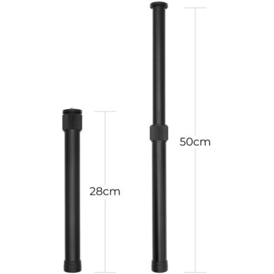 To teleskopowe mocowanie od Hohem z gwintem 1/4" i 3,4" może być używane z gimbalami Hohem iSteady MT2/M6/XE/Mobile+/V2s/X2/X/V2. Przedłużenie można całkowicie złożyć do ok. 28,2 cm i całkowicie wysunąć do ok. 50,8 cm, z zakresem wysuwu ok. 22,6 cm**.