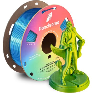 Dwukolorowy filament PLA o jedwabistym połysku i zmieniającym się kolorze w zależności od kąta patrzenia. Łatwa do drukowania, ekologiczna szpula. 1,75 mm, 1 kg.