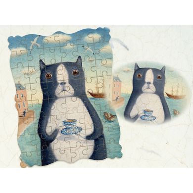 Pięknie ilustrowana układanka z motywem kota, której rozmiar i jakość poszczególnych elementów sprawiają, że jest idealna dla małych budowniczych.