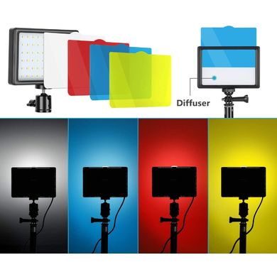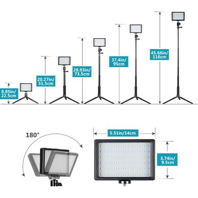 Oprawa Neewer to doskonały wybór dla początkujących lub zaawansowanych fotografów i kamerzystów. Lampa składa się z dwóch paneli umieszczonych na statywie, z których każdy posiada 66 pojedynczych diod LED SMD. Wykorzystaj w pełni potencjał tych diod z możliwym tłumieniem mocy – więc to od Ciebie zależy, ile potrzebujesz, aby oświetlić scenę. Zakres regulacji wynosi 10–100%. Światło jest udoskonalane przez wymienne filtry, które dostosowują charakterystykę kolorów emitowanego światła. Dzięki strumieniowi świetlnemu do 1000 lumenów możesz fotografować nawet w najciemniejszych scenach. Dzięki kablowi USB możliwe jest korzystanie z ładowarki do telefonu lub nawet mocniejszego power banku.