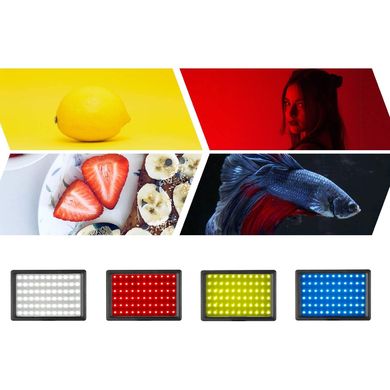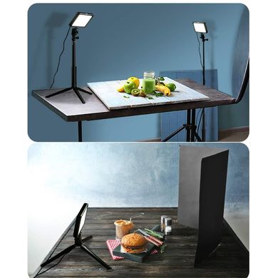 Lampa fotograficzna – stała, ze zintegrowanym źródłem LED, moc 2×10 W, płytka, maks. chromatyczność 5600 K, zasilanie bateryjne i sieciowe, 4 filtry barwne