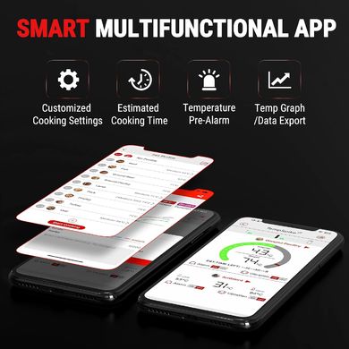 Sonda pomiarowa posiada dwa czujniki temperatury, jeden dla wnętrza potrawy (-10 °C do 100 °C) i jeden dla komory gotowania (-10 °C do 300 °C). Czujnik temperatury rdzenia dostarcza zmierzoną wartość w ciągu 3 sekund z tolerancją ±1°C. Dzięki klasie wodoszczelności IP67, ten termometr kuchenny może być myty pod bieżącą wodą , a nawet w zmywarce. Termometr jest zasilany 2 bateriami AAA. Termometr kuchenny jest łatwy w użyciu dzięki aplikacji TempSpike. W aplikacji dostępne są najważniejsze rodzaje mięsa i poziomy gotowania, które w razie potrzeby można indywidualnie dostosować. W aplikacji można wstępnie ustawić alarm, wyraźnie monitorować graficzną temperaturę i postęp przygotowania mięsa, skontaktować się bezpośrednio z obsługą klienta ThermoPro i korzystać z wielu innych funkcji.