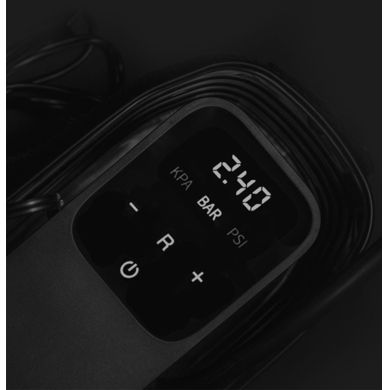 Cała sprężarka wykonana jest z wysokiej jakości materiałów, co można wyczuć już przy pierwszym dotknięciu. W górnej części sprężarki znajduje się wyświetlacz i cztery przyciski do sterowania sprężarką. Podczas pompowania można nie tylko odczytać aktualny poziom ciśnienia, ale także ustawić, kiedy kompresor ma przestać pompować. Sprężarka wyłącza się automatycznie po osiągnięciu żądanego ciśnienia.