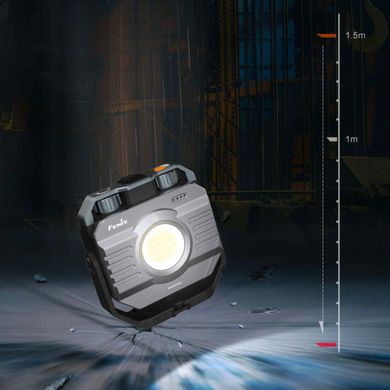 Solidna obudowa wykonana ze stopu aluminium i wytrzymałego tworzywa sztucznego jest odporna na upadki z wysokości 1,5 metra oraz na silny deszcz dzięki certyfikatowi IP66. Praktyczny uchwyt ze zintegrowanym magnesem i gwintem statywowym umożliwia łatwe i różnorodne mocowanie lampy praktycznie wszędzie – na ścianie, na metalowej konstrukcji lub na statywie. Uchwyt można obracać o 360°, co zapewnia pełną elastyczność w kierowaniu światła.