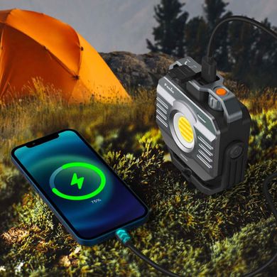 W obudowie latarni ukryty jest wydajny akumulator o pojemności 10 000 mAh, który można ładować przez złącze USB-C. Urządzenie posiada również dwa porty wyjściowe (USB-A i USB-C), które obsługują protokoły szybkiego ładowania PD3.0, QC3.0 i inne o mocy do 18 W. Latarnia może więc służyć jako niezawodny powerbank dla telefonu, aparatu lub innych urządzeń.