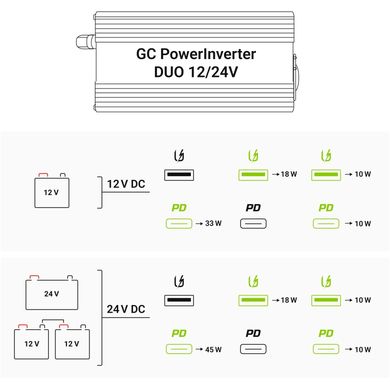 Przetwornica samochodowa Green Cell® DUO 12V/24V na 230V 300W/600W to