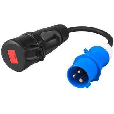 Adapter z czerwonej wtyczki CEE 16A na niebieską wtyczkę CEE