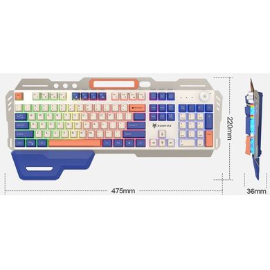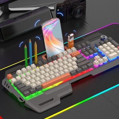 Przewodowa klawiatura dla graczy z podświetleniem RGB, metalowa obudowa, klawisze multimedialne, brak czeskich znaków, uchwyt na telefon, kabel USB o długości 130 cm, regulacja głośności