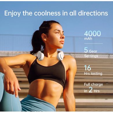 Chłodzący ogrzewacz szyi z wbudowanymi wentylatorami, żywotność baterii do 16 godzin, 5 prędkości, ergonomiczny kształt, pojemność baterii 5000 mAh, kompaktowa konstrukcja
