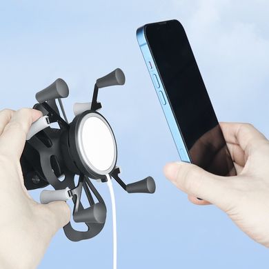 Uniwersalny uchwyt na kierownicę lub drążek, do telefonów z etui lub bez, szerokość 43–100 mm, zacisk szybkomocujący o średnicy 18–35 mm, obsługa MagSafe
