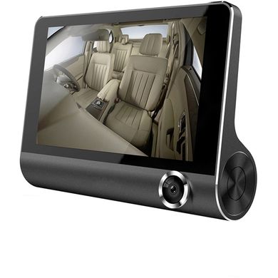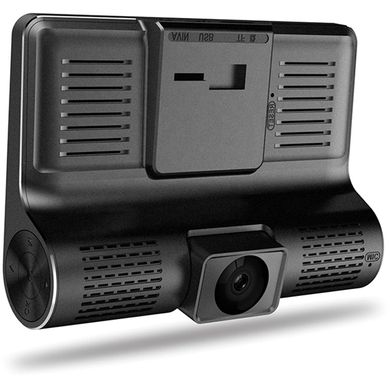 **Zestaw samochodowy z trzema kamerami i dużym 4-calowym wyświetlaczem. Zestaw zawiera kamery nie tylko do filmowania drogi przed samochodem i kamerę wewnętrzną, ale także kamerę tylną, która rejestruje to, co dzieje się za samochodem. Szerokokątne pole widzenia 170° przedniej kamery obejmuje również trzy pasy ruchu, rejestrując więcej szczegółów i akcji na drodze. Kamera jest sterowana i regulowana za pomocą przycisków sterujących.
