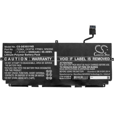 Bateria do notebooków DELL XPS 13 9300,9380, 9310, pojemność 6500mAh, Li-Pol, producent: Cameron Sino Technology