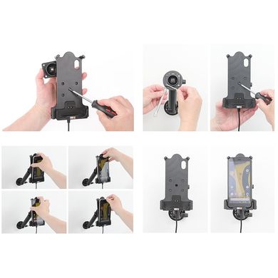 Uchwyt jest bardzo solidny, telefon nie przykleja się do niego ani nie wibruje. Uchwyt montuje się do Brodit ProClip lub do podstaw i ramion montażowych Brodit.