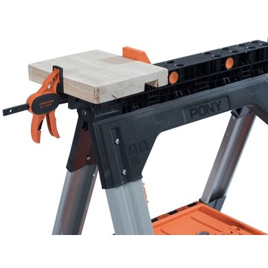 Składany kozioł budowlany Pony Jorgensen to niezastąpiony partner w warsztacie, ogrodzie i na placu budowy. Dzięki mocnej konstrukcji wykonanej z wytrzymałego plastiku, aluminium i stali, może utrzymać do 545 kg na kozę. Po połączeniu tych dwóch elementów powstaje stabilny stół warsztatowy o łącznej nośności do 272 kg**. Umieść płyty OSB, MDF lub inne płyty na górze i masz pełną stację roboczą.