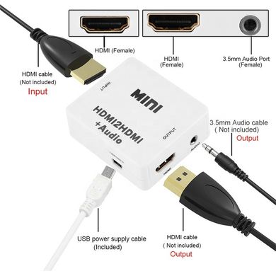 Mini konwerter wideo HD HDMI do sygnału wideo HDMI i wzmocnionego sygnału AUDIO z analogowym wyjściem audio 3,5 mm
