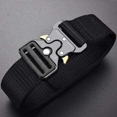 Wysokiej jakości czarny taktyczny pas wojskowy z metalową klamrą w kolorze czarnym.