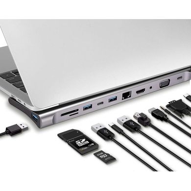 Hub USB-C 11w1 posiada różne złącza, kompatybilny z ogromną większością laptopów i komputerów